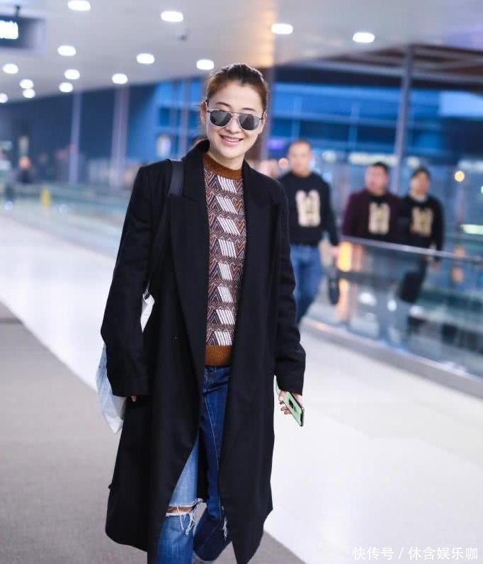 黑大衣配上破洞牛仔裤,这搭配让人有点没想到,毕竟黑大衣是冷天穿的,破洞牛仔裤却多是夏天流行。